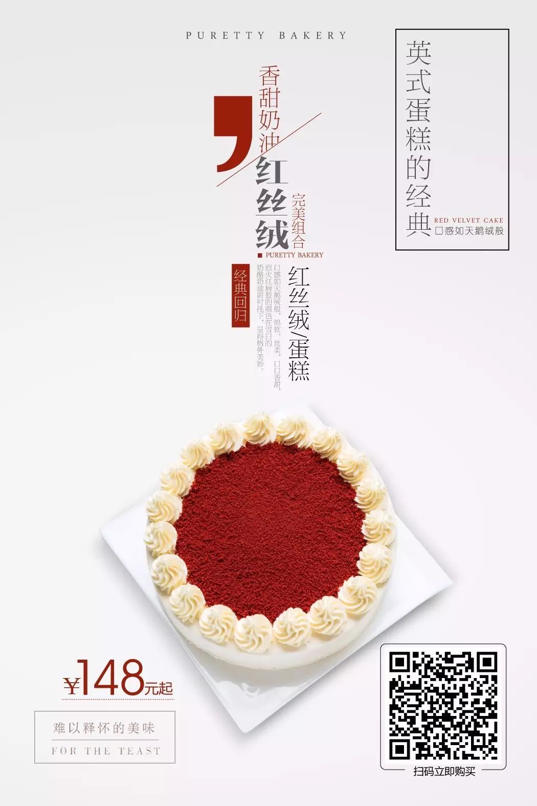 无论红丝绒有多么狗血、八卦、传奇的故事,那些都是过眼云烟,只是大家在茶余饭后笑谈的一个小资本吧。真正让人们沉醉的还是它本身的滋味,红白两色看似极简,却含有酸、甜、咸几种强烈丰富的味道,而这几种味道,绝不是粗糙的堆砌,是需要经过甜品师的高超技艺将之完美融合在一起,才能造就出她独特的令人回味无穷的味道。